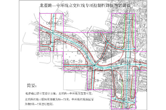 随着虹桥综合交通枢纽建设的推进,根据市相关会议精神,北翟高架路—中环线立交工程列为近期建设项目。为配合北翟路—中环线立交工程的推进,确保北翟高架路工程的实施贯通,我院会同长宁区规划局、普陀区规划局、中环项目公司、北翟高架路—中环线立交工程设计单位进行多次讨论协商,并达成共识,对北翟高架路—中环线立交进行道路红线规划调整。