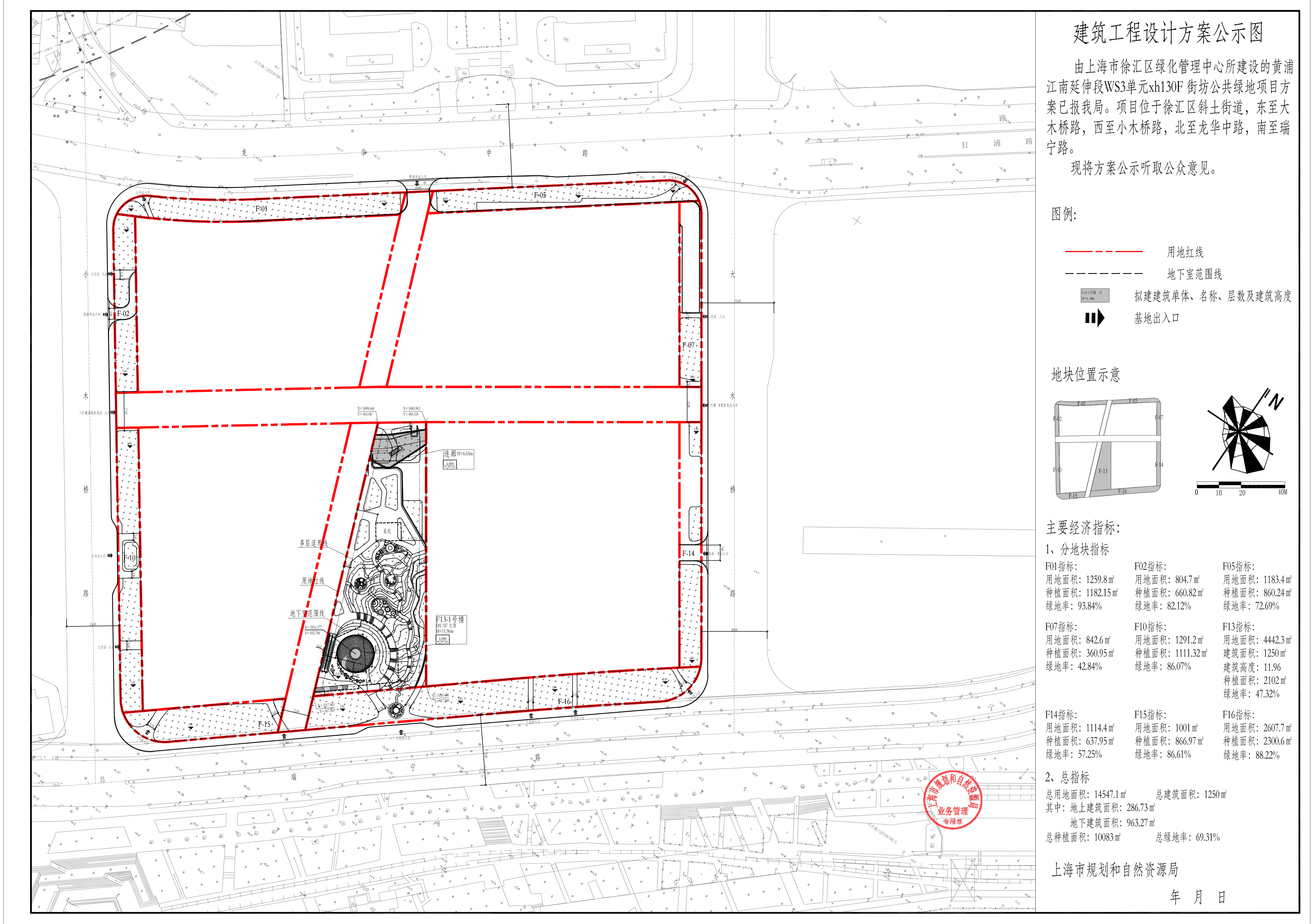 关于黄浦江南延伸段WS3单元xh130F街坊公共绿地项目建设工程设计方案的公示