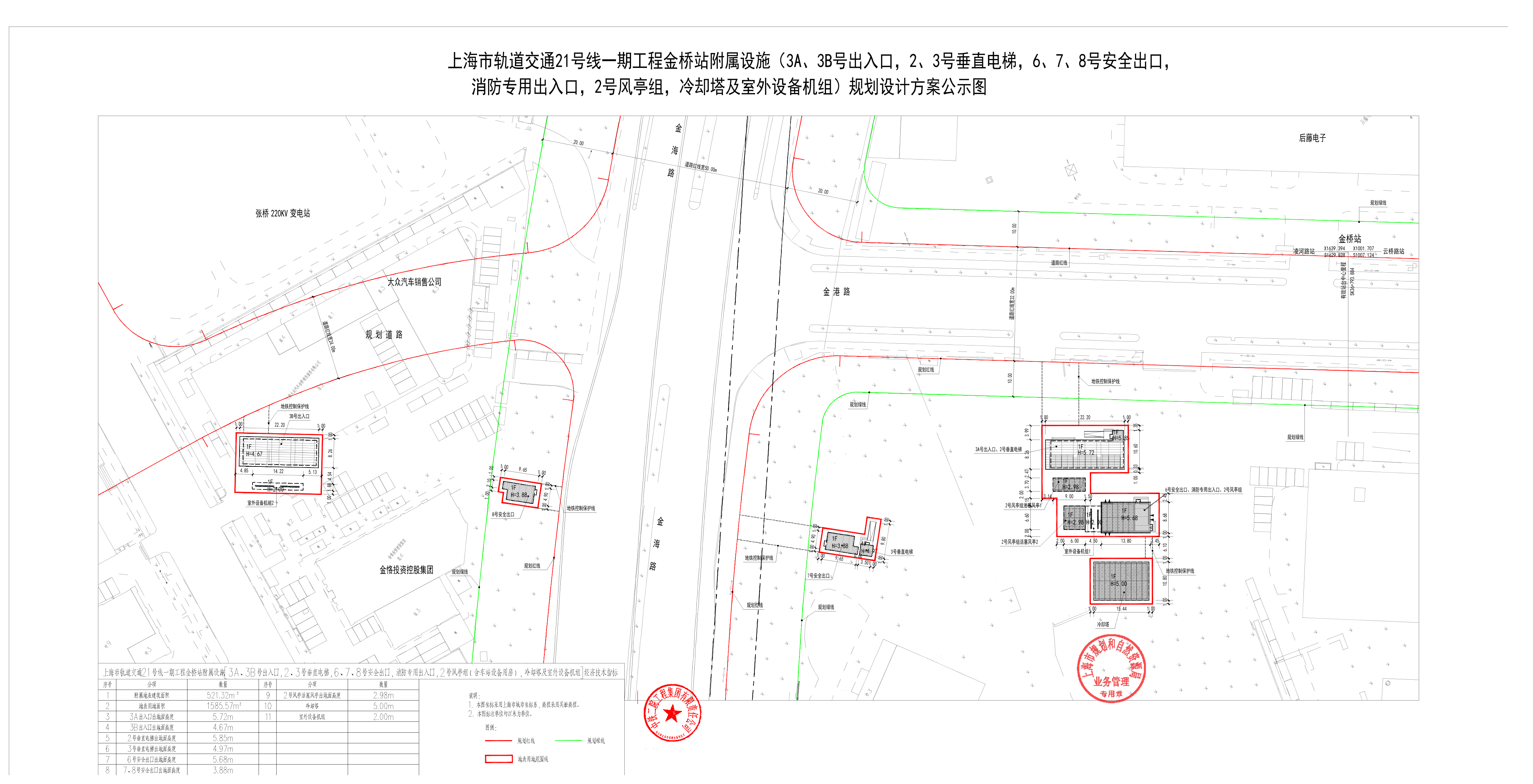 关于上海市轨道交通21号线一期工程金桥站附属设施(3A、3B号出入口,2、3号垂直电梯,6、7、8号安全出口,消防出入口,2号风亭组,冷却塔及室外设备机组)建设工程设计方案的公示