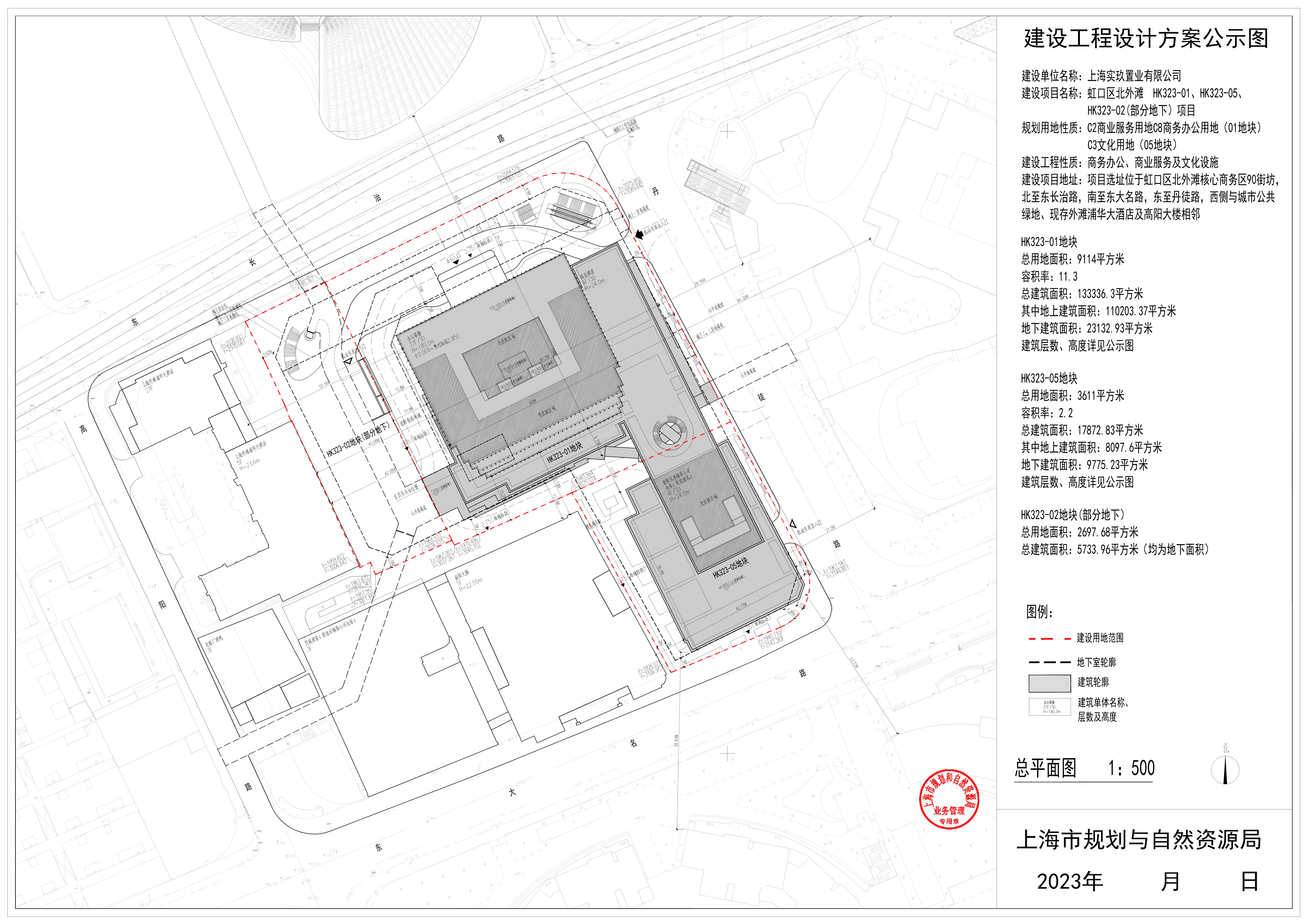 关于虹口区北外滩HK323-01、HK323-05、HK323-02(部分地下)项目建设工程设计方案的公示 发布日期:2023-11-24