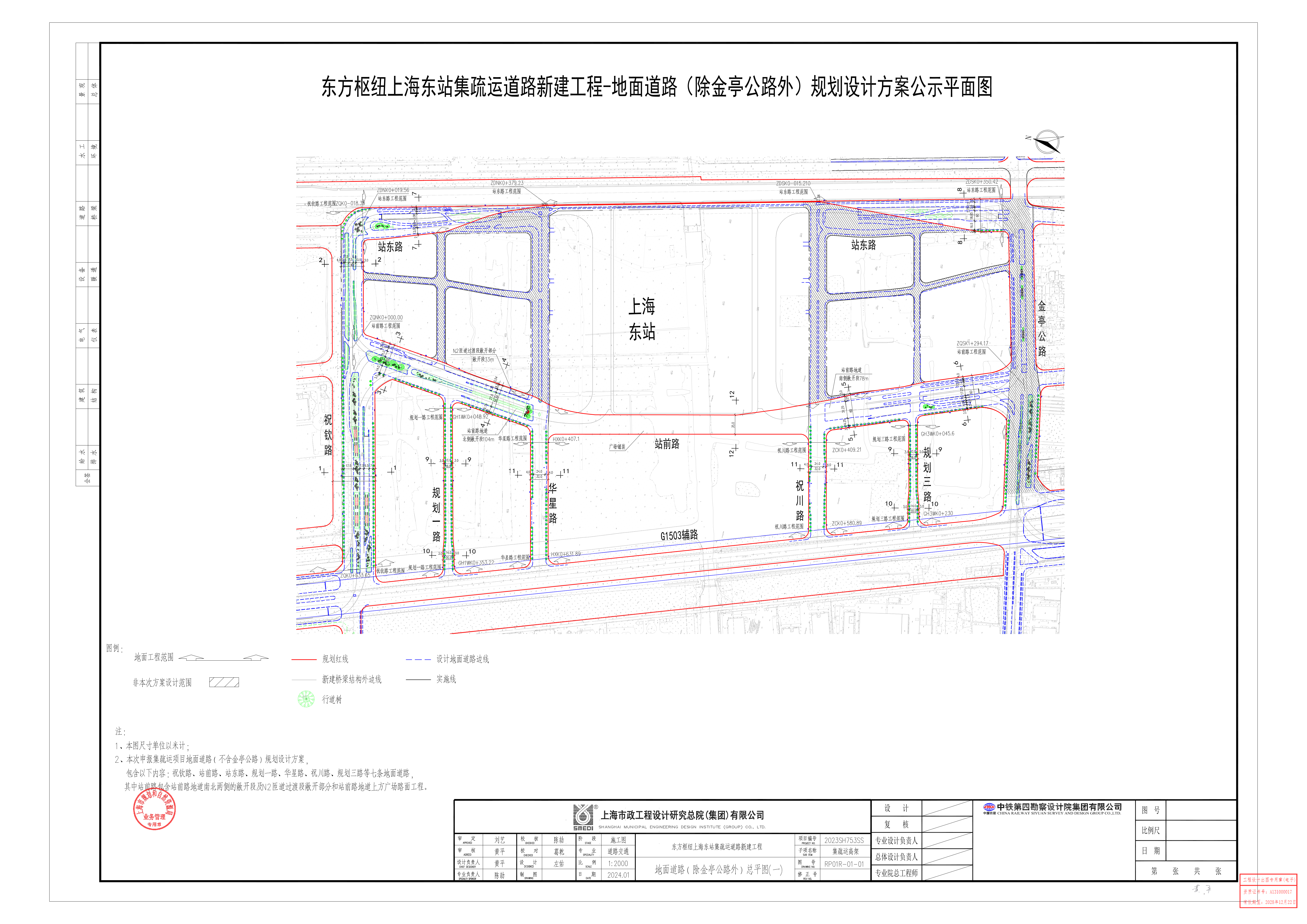 根据上海市建设工程设计方案规划公示的有关规定,现将上海东方枢纽投资建设发展集团有限公司东方枢纽上海东站集疏运道路新建工程地面道路(除金亭公路外)设计方案公示如下: