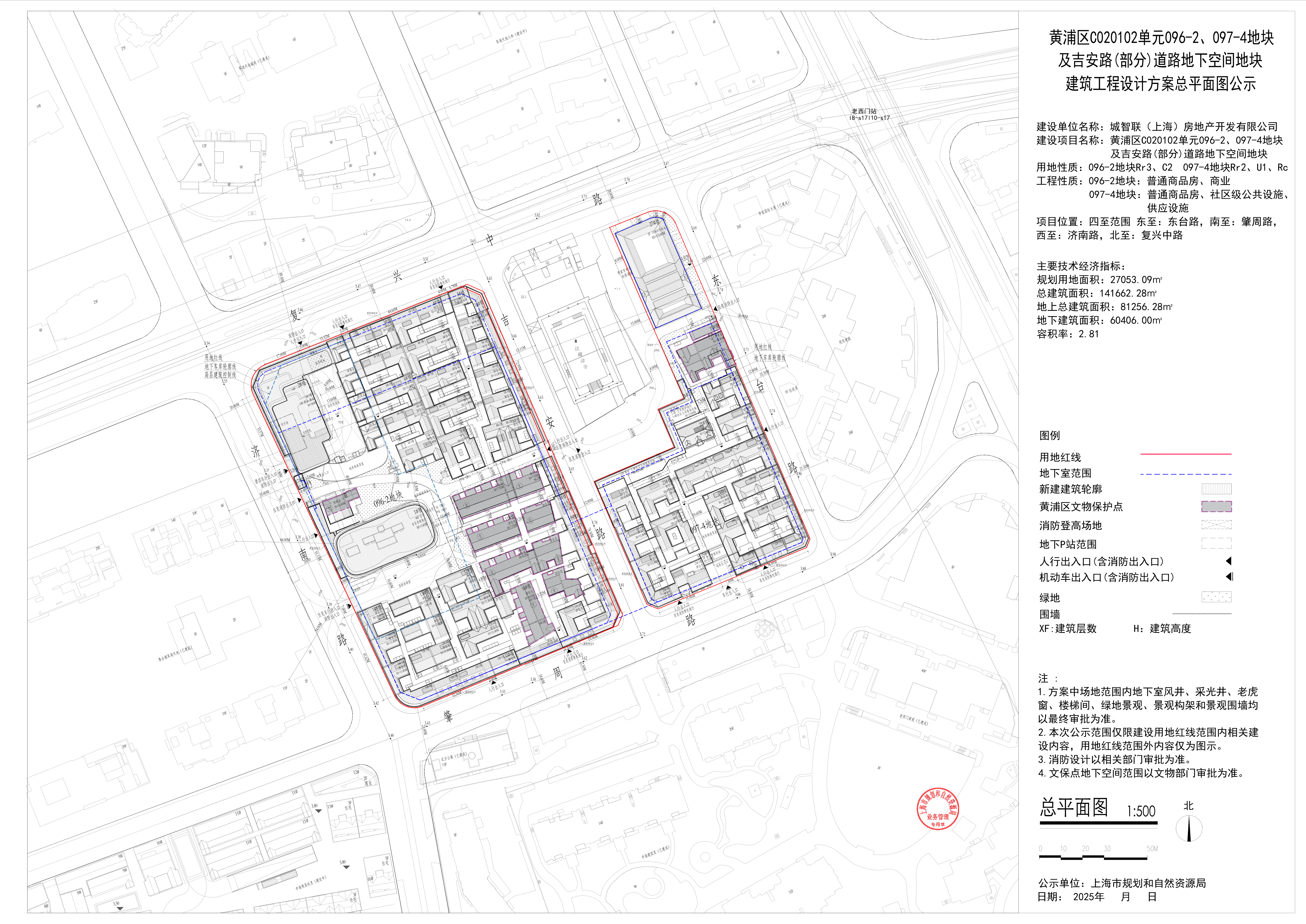 关于黄浦区C020102单元096-2、097- 4地块及吉安路(部分)道路地下空间地块历史风貌保护项目建设工程设计方案的公示 发布日期:2025-09-26