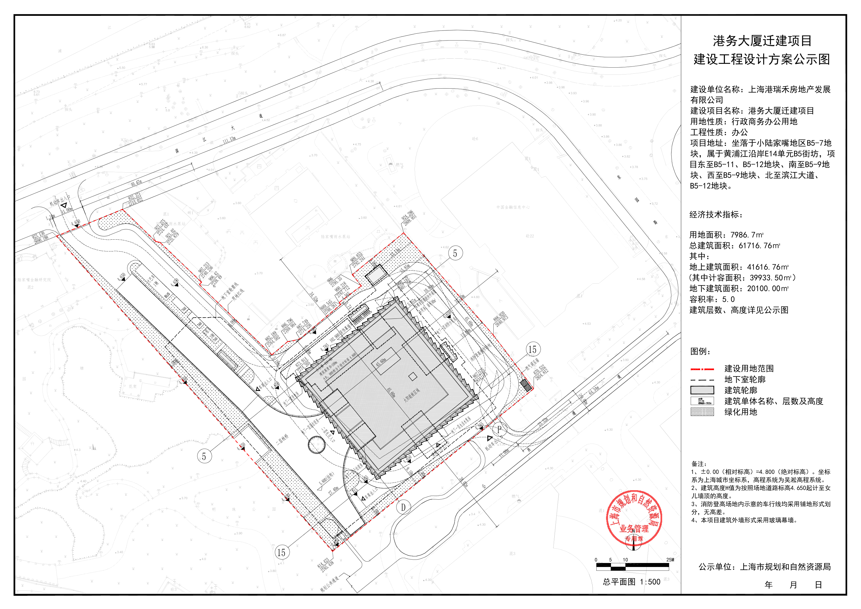 根据上海市建设工程设计方案规划公示的有关规定,现将上海港瑞禾房地产发展有限公司港务大厦迁建项目设计方案公示如下: