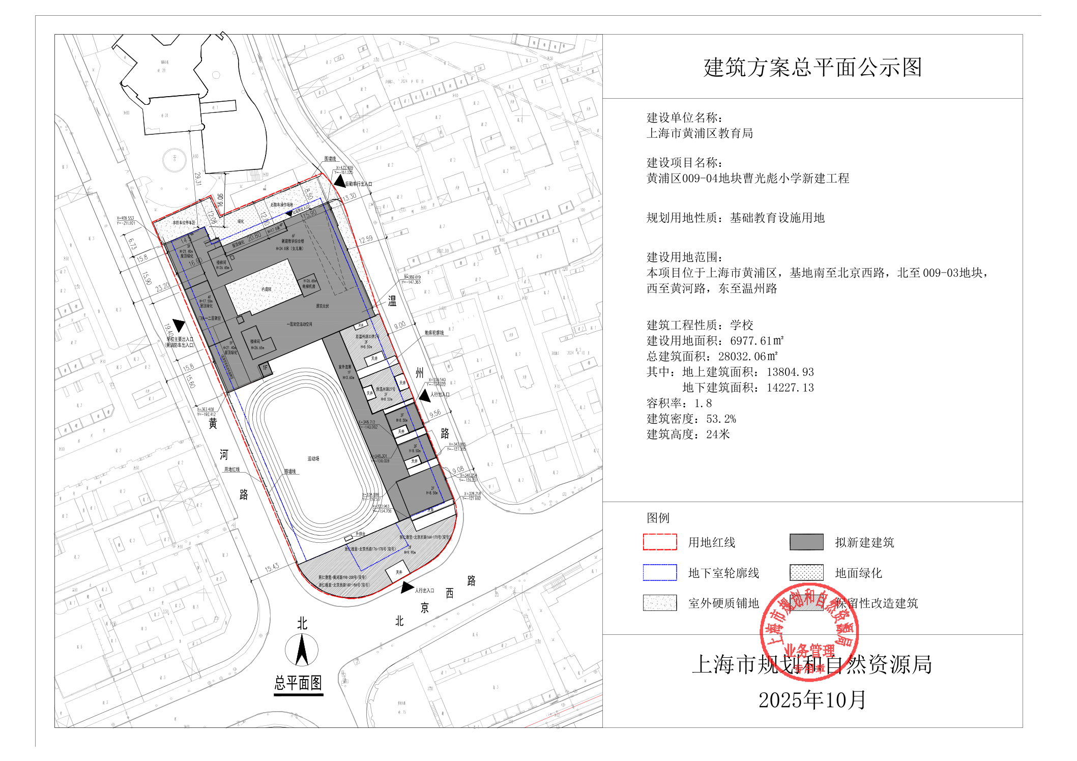 关于黄浦区009-04地块曹光彪小学新建工程建设工程设计方案的公示 发布日期:2025-10-20