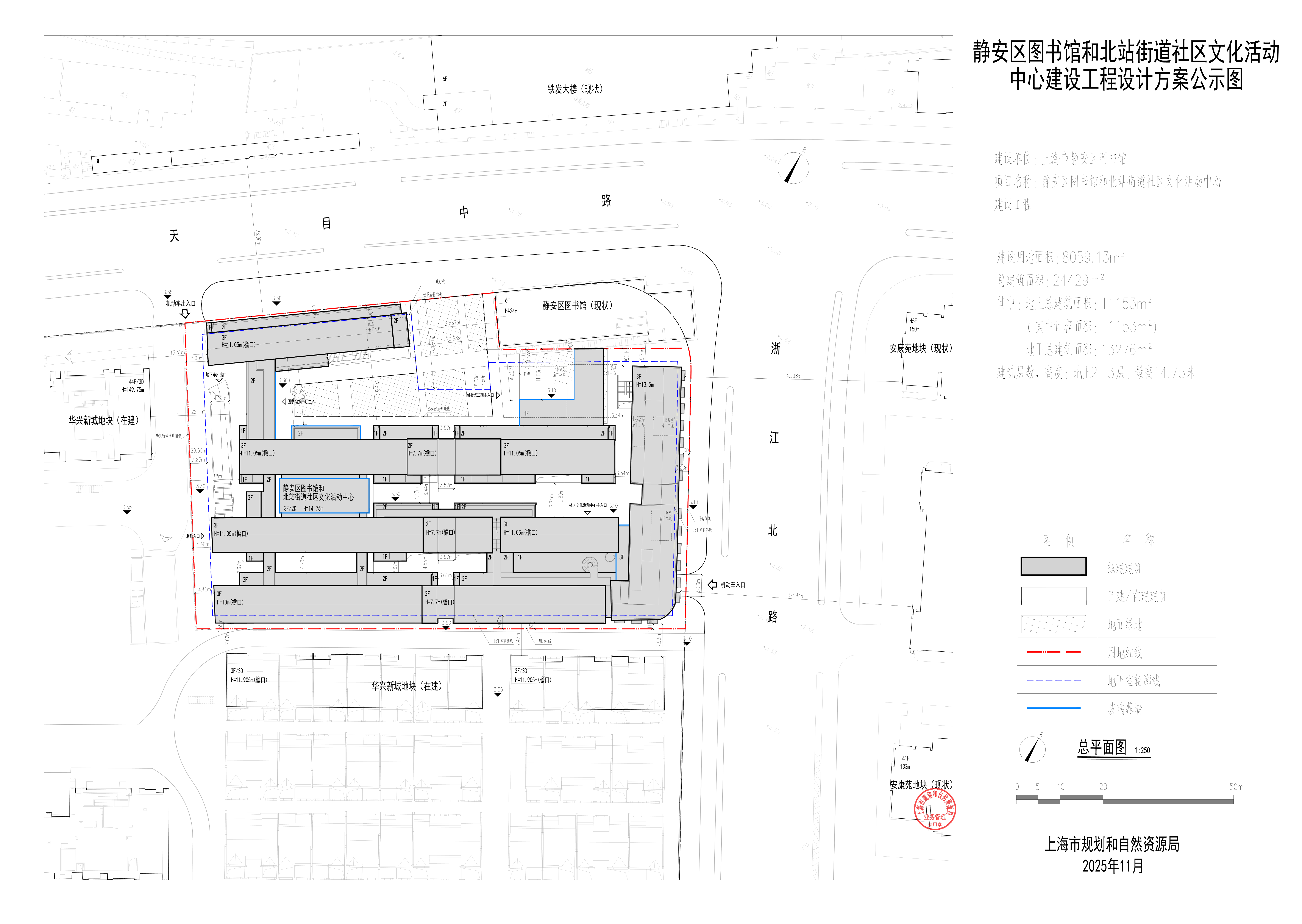 关于静安区图书馆和北站街道社区文化活动中心建设工程建设工程设计方案的公示 发布日期:2025-11-28