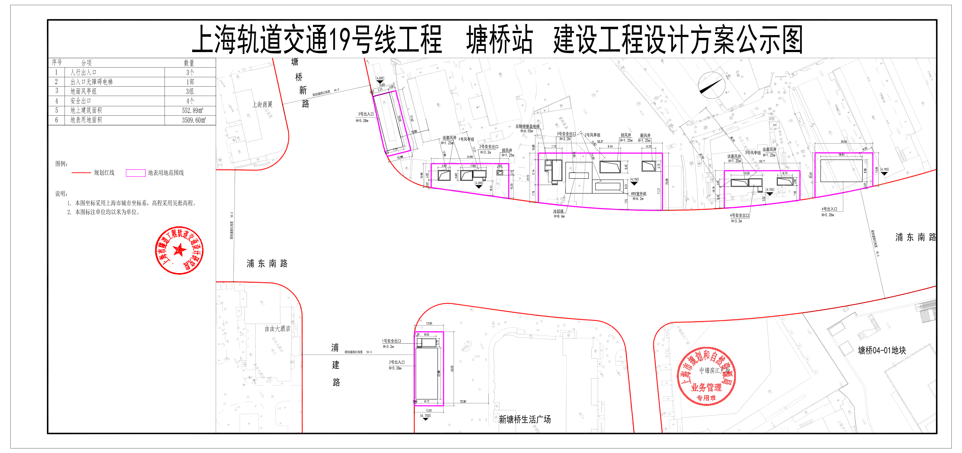 关于上海市轨道交通19号线工程塘桥站建设工程设计方案的公示