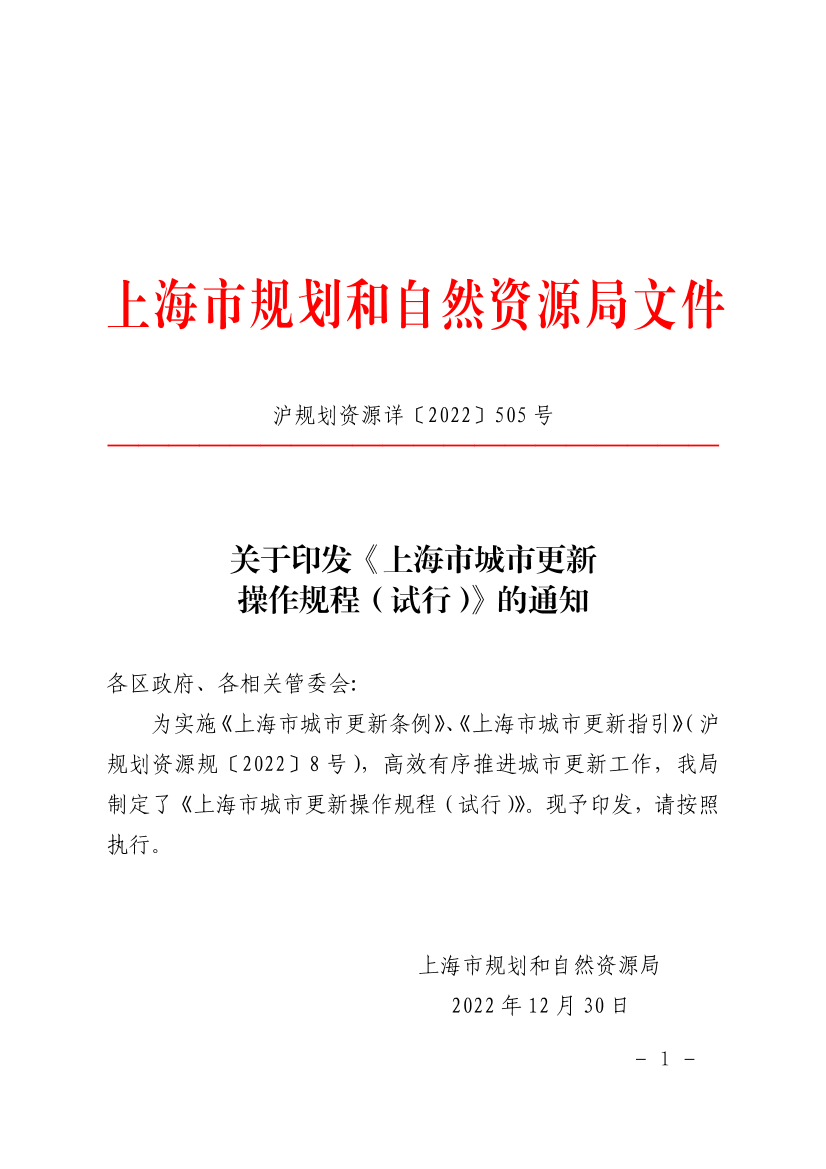 关于印发《上海市城市更新操作规程(试行)》的通知 发布日期:2022-12-30